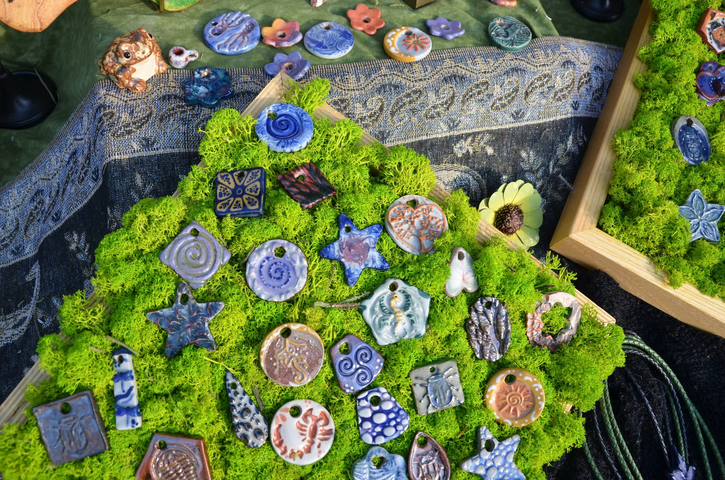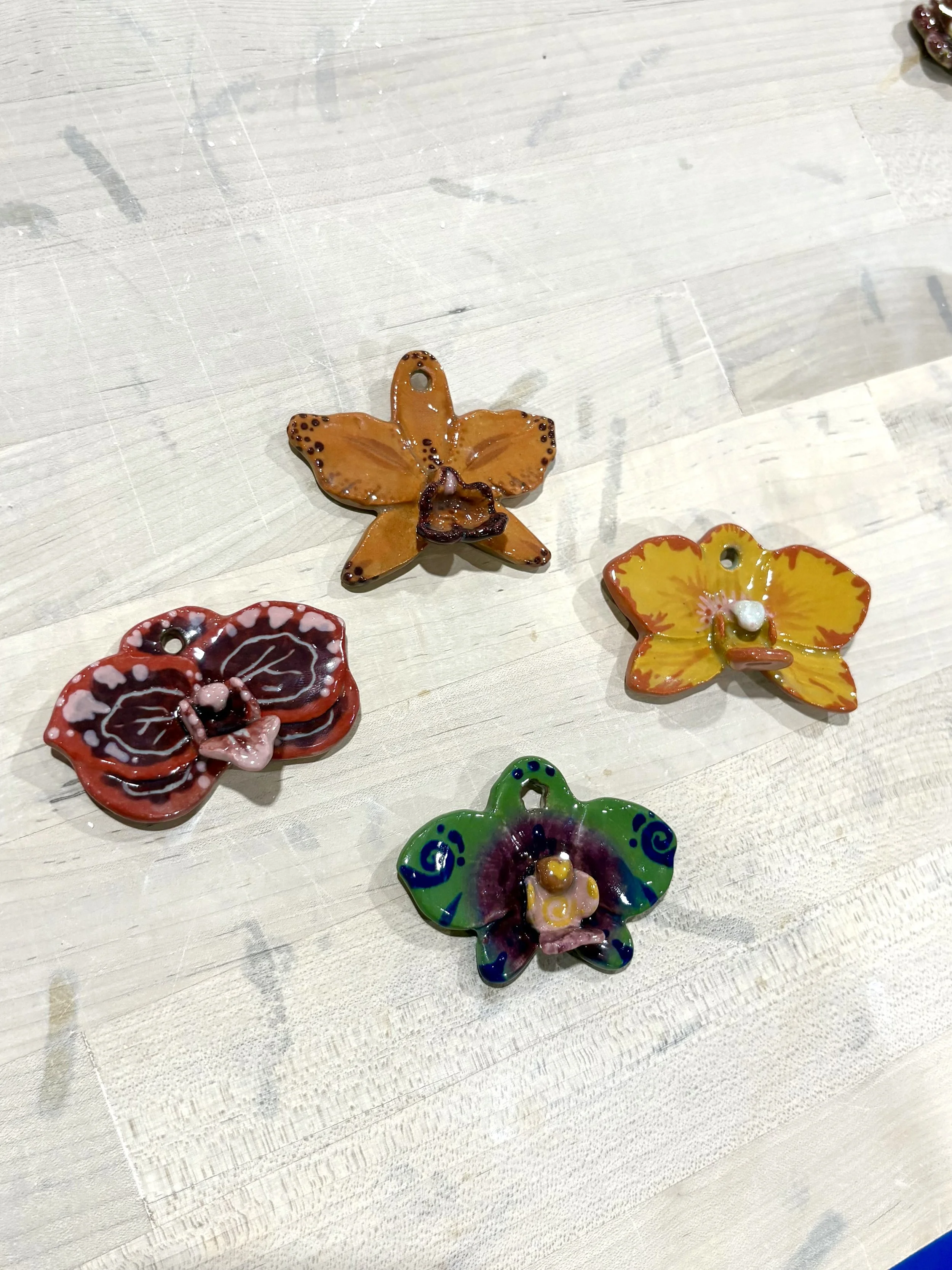 Each pendant undergoes a meticulous process of shaping, carving, under-glazing, and two separate firings—first bisque, then glaze.